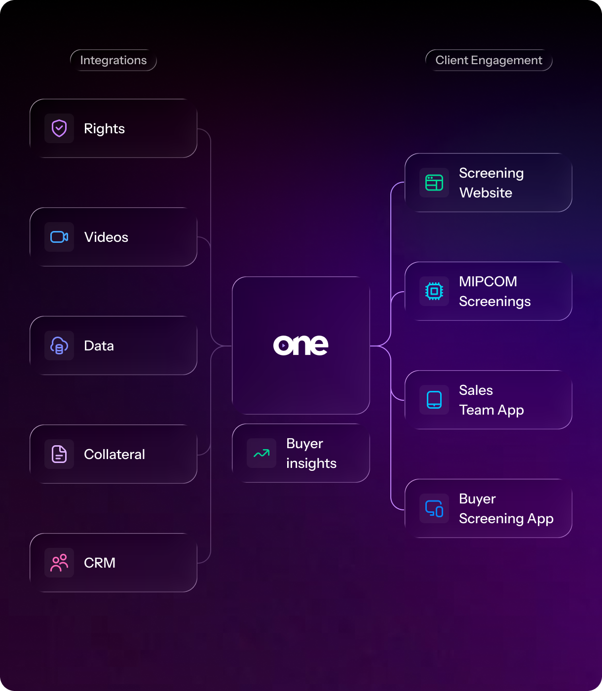 ONE is the single platform that puts TV distributors in full control of presenting, managing, and screening complex catalogues for global buyers.